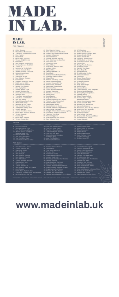 Here you can find list of all MADE IN LAB fragrances